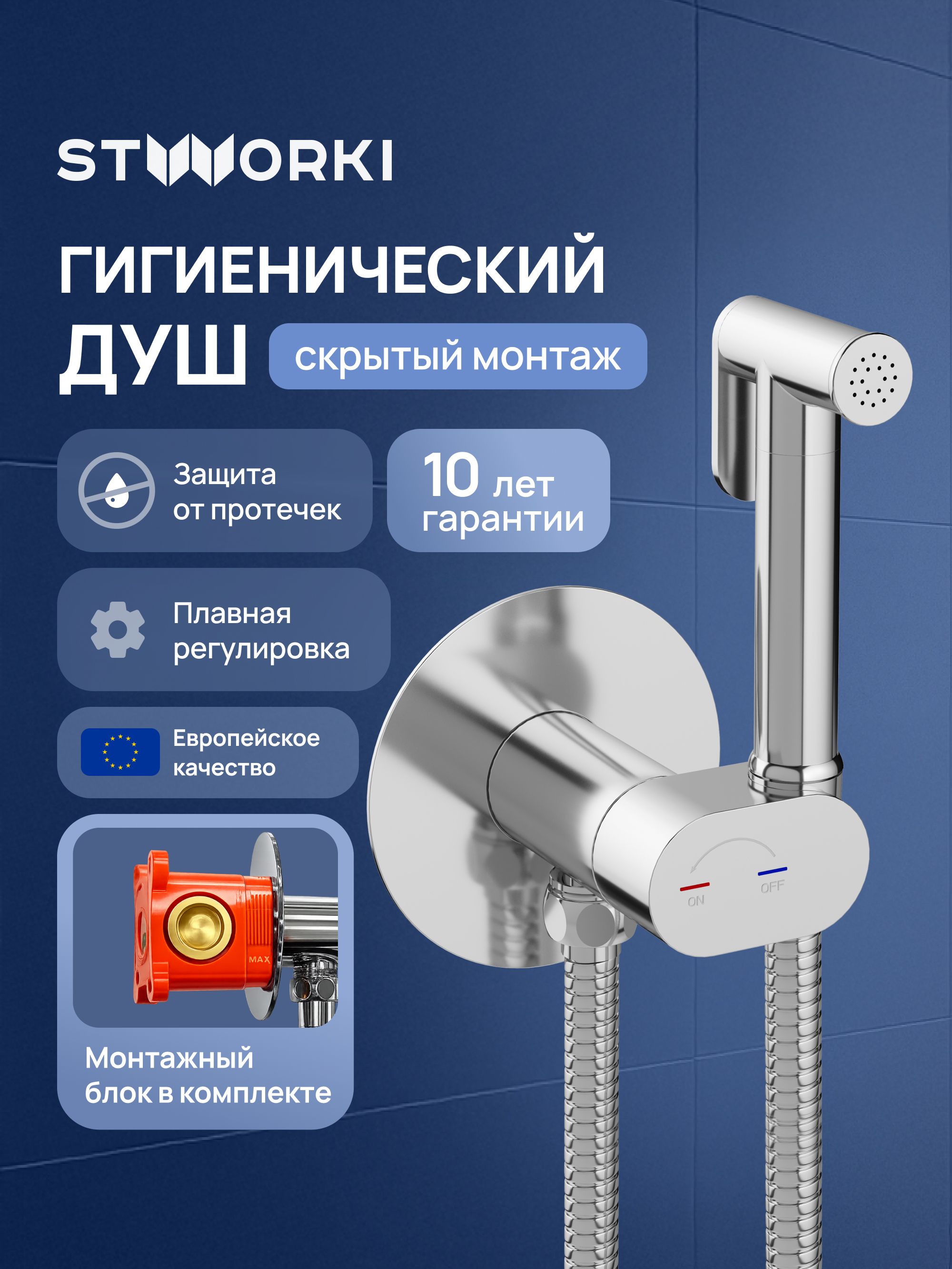 Гигиенический душ STWORKI Вестерос S26150CR со смесителем, С ВНУТРЕННЕЙ ЧАСТЬЮ, хром