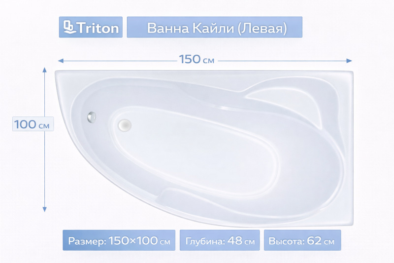 Купить Ванна Кайли (левая) 150х100 Triton вы можете в компании Вся сантехника, оформив заказ в интернет магазине, или