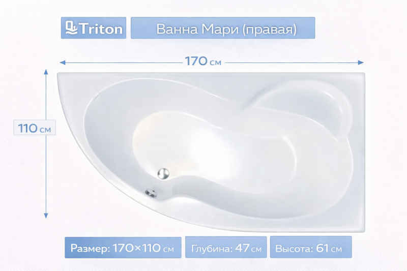 Купить Ванна Мари (левая) 170х110 Triton вы можете в компании Вся сантехника, оформив заказ в интернет магазине, или