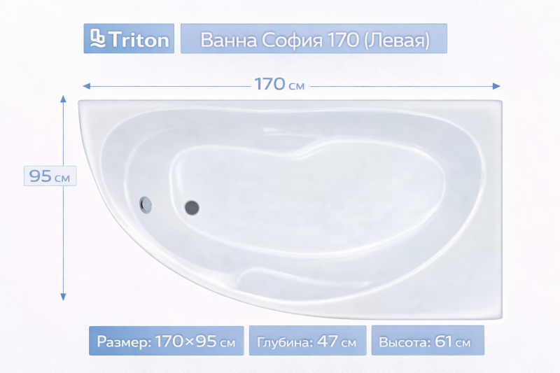 Купить Ванна София 170 (Левая) 170х95 Triton вы можете в компании Вся сантехника, оформив заказ в интернет магазине, или