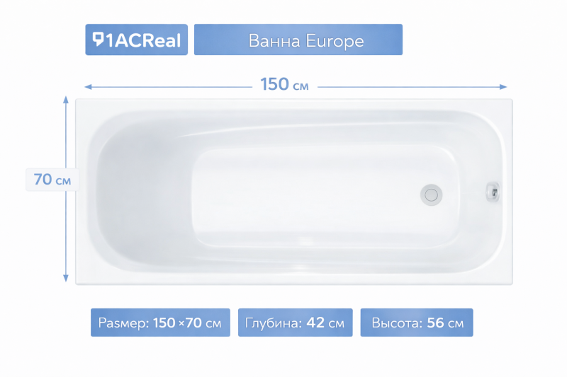 Купить Ванна Europe 150х70 1ACReal вы можете в компании Вся сантехника, оформив заказ в интернет магазине, или