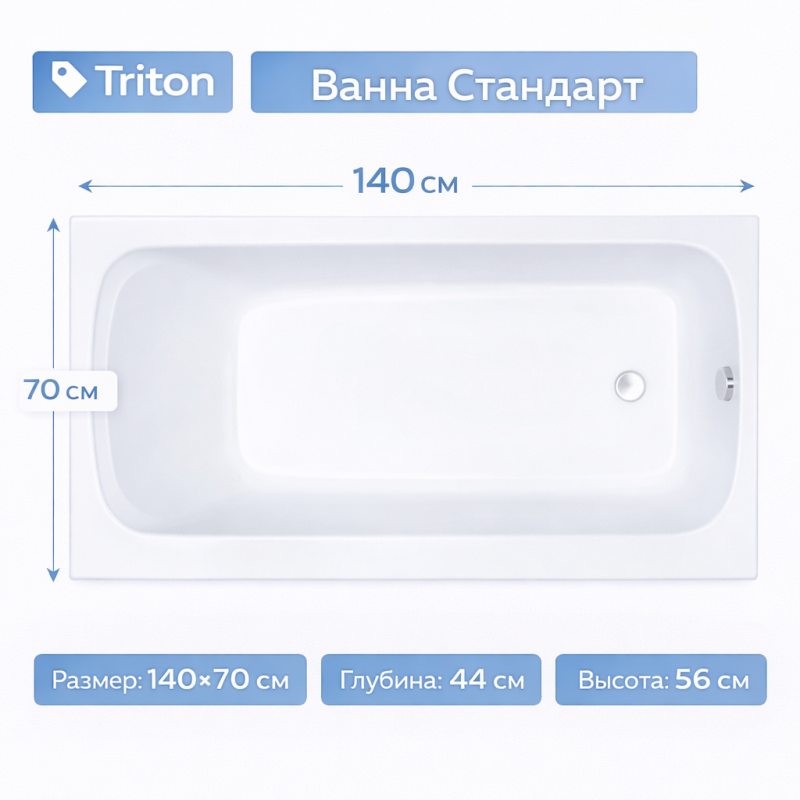 Купить Ванна Стандарт 140х70 Triton вы можете в компании Вся сантехника, оформив заказ в интернет магазине, или