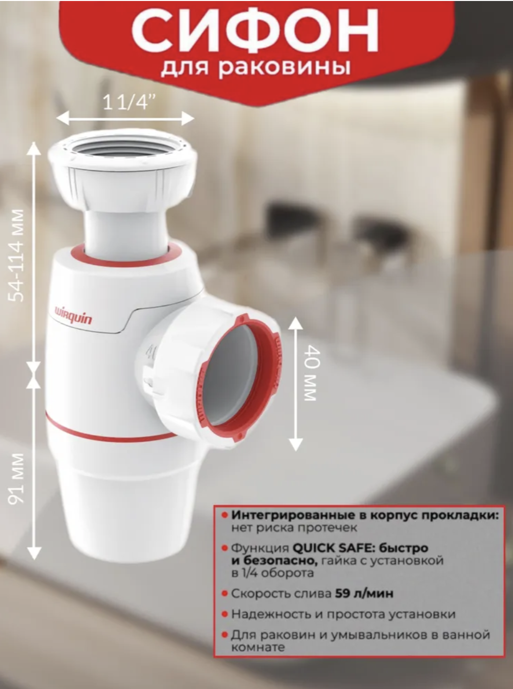 Купить Сифон для раковины Wirquin Neo 30987068 32 мм, бутылочный, белый вы можете в компании Вся сантехника, оформив заказ в интернет магазине, или