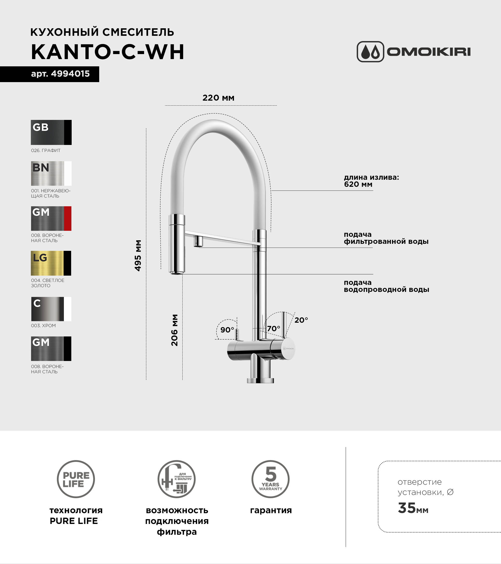 Смеситель для кухни Omoikiri Kanto C с гибким изливом