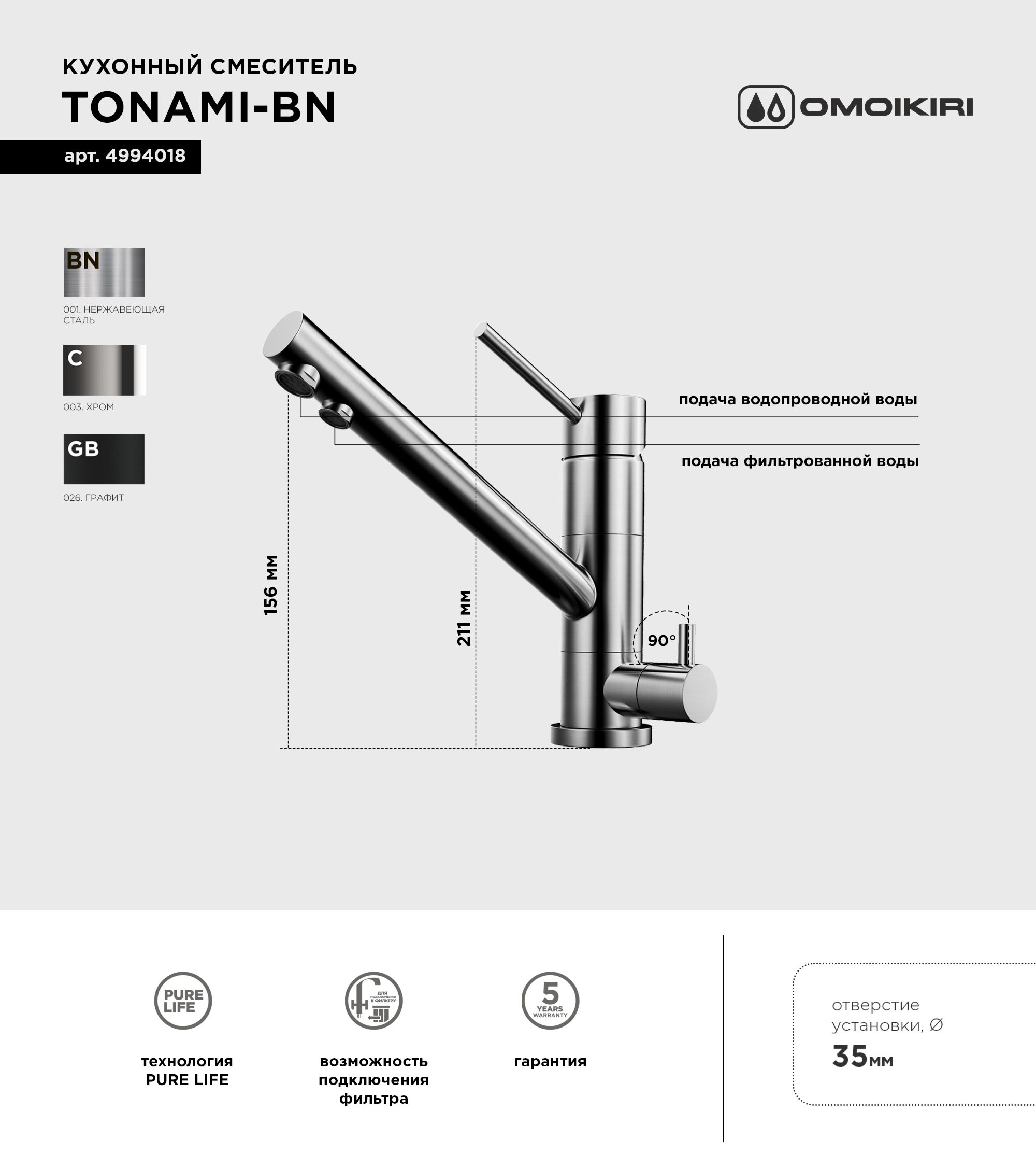 Купить Смеситель для кухни Omoikiri Tonami BN нержавеющая сталь вы можете в компании Вся сантехника, оформив заказ в интернет магазине, или